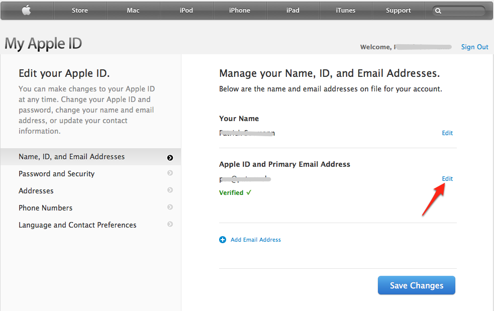 - Click on “Edit” next to the Apple ID